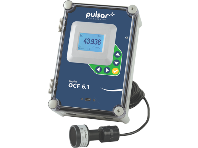 Измеритель уровня жидкости в открытых каналах OCF 6.1 компании Greyline Instruments от Pulsar Measurement использует бесконтактный ультразвуковой датчик, устанавливаемый над лотком или водосливом для измерения расхода или внутри/над резервуаром для измерения уровня. Отдельный водонепроницаемый корпус с электроникой и дисплеем может быть установлен на расстоянии до 150 м от датчика. OCF 6.1 непрерывно отображает, суммирует, передает и регистрирует данные о расходе или уровне жидкости в открытых каналах.